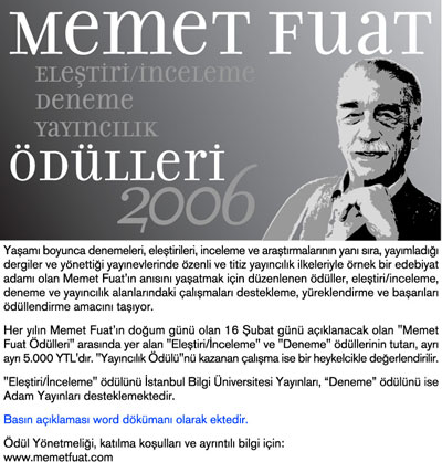 | Sekreterya | Ödül Yönetmeliği | İlan | Basın Açıklaması | Başvurular | Duyurular